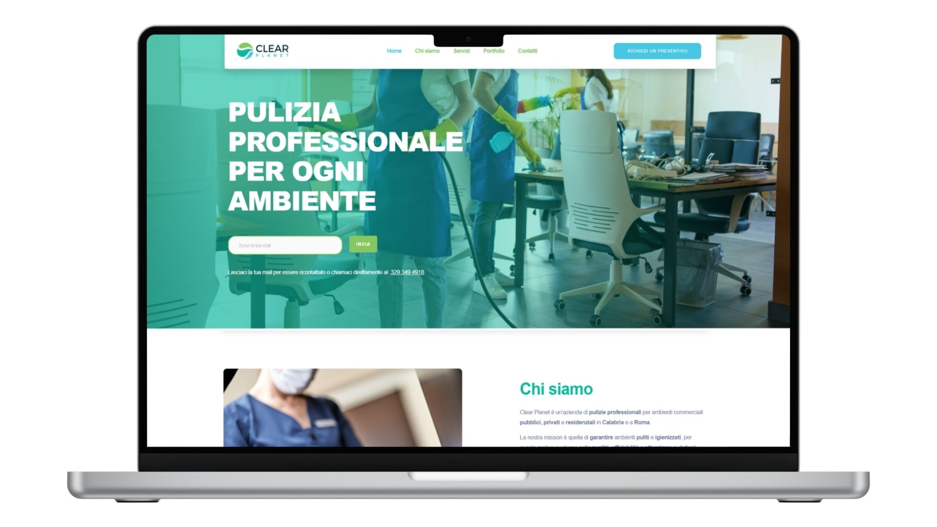 Il sito della Clear Planet si distingue per un design chiaro e professionale, che coniuga semplicità ed efficienza comunicativa.